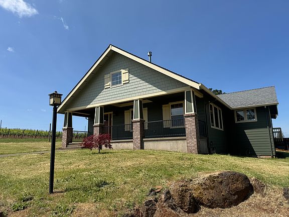 This Beautiful 1800 square foot custom built Craftsman style home was completed in late 2010. Located on a vineyard property in a rural setting surrounded by other farmland and with a spectacular view of the Cascade Range. Three bedrooms, two full bathrooms. Single level great room floor plan with vaulted ceiling and gas fireplace. Kitchen includes gas cooking range, refrigerator and dishwasher. A separate laundry room off the two car garage. Hardwood floors in the living areas, bedrooms and entry, vinyl floor in bathrooms and utility room.