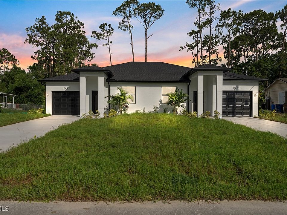 Builder offering special financing incentives through preferred lender for qualified buyers, potentially including interest rate buy-downs, reduced lender fees, and other favorable terms. Terms, conditions, and qualification criteria apply. Located just minutes from Daniels Parkway with easy access to Fort Myers, this brand-new duplex in West Lehigh Acres combines modern design, comfort, and convenience. Nestled in one of Southwest Florida’s fastest-growing residential areas, you’ll enjoy a peaceful neighborhood feel while staying close to top-rated restaurants, shopping, and entertainment. Whether you’re a first-time homebuyer looking to offset your mortgage with rental income or an investor seeking a high-demand property, this is an opportunity that checks every box. Each unit offers 3 spacious bedrooms and 2 beautifully designed bathrooms, featuring an open-concept layout filled with natural light and stylish finishes. The kitchens boast white cabinetry, granite countertops, and stainless steel appliances, blending function with a clean, contemporary look. Additional highlights include in-unit washer and dryer, water softener systems, independent sprinkler systems, and ample indoor and outdoor living areas perfect for entertaining or relaxing after a long day. This isn’t just a duplex it’s a smart investment in a thriving community where growth, value, and lifestyle come together. Opportunities like this don’t last long.