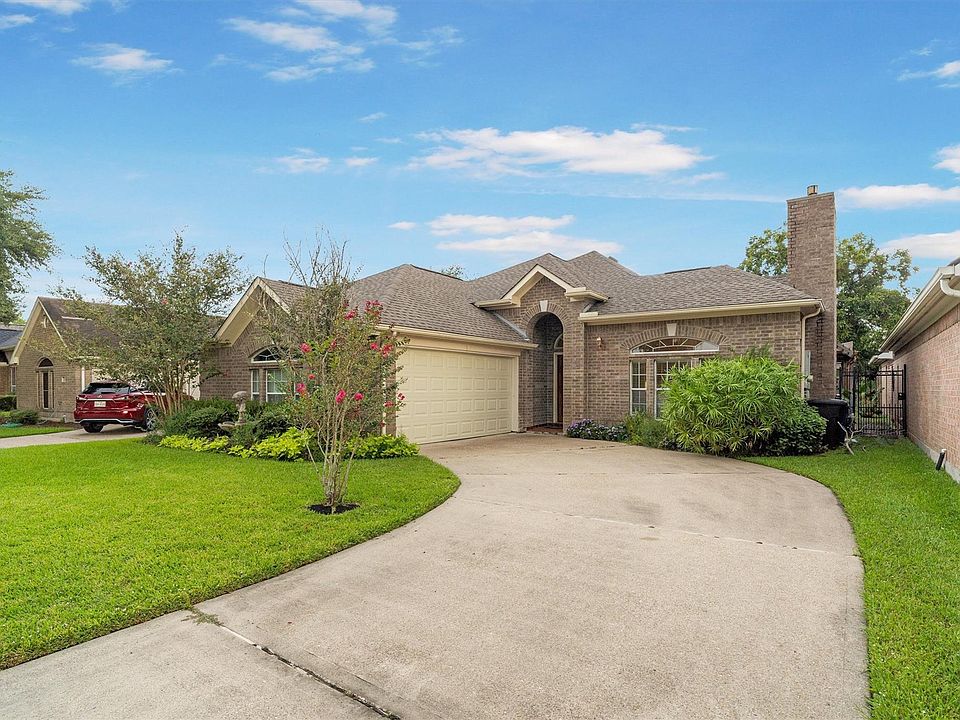 Well-Maintained 1-story Home in Nassau Bay! This 2/3-Bedroom, 2-Bath home features an open concept living space with 13-foot ceilings, architecturally designed arches, & double crown moldings that add style & dimension. The flexible layout includes a third bedroom currently staged as an office, easy to convert back to a bedroom. Additional features include gas fireplace, engineered wood & tile flooring, granite countertops w/under-cabinet lighting, beverage fridge & a full underground sprinkler system. Updates include: HVAC Condenser Unit & Roof (2021), Evaporator HVAC Unit (2022), Jenn-Air Cooktop, Garage Door & Opener (2023), New Fence (2024). The spacious backyard backs up to Swan Lagoon Park & features two covered patio areas, creating a private, peaceful setting w/multiple outdoor sitting areas. Storage Shed conveys w/property. A partial bay view is just across the street. Conveniently located near HWY 146, I-45, NASA’s Space Center, Methodist Hospital & local amenities.