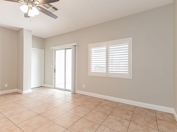 This two-story rental home in Henderson has many excellent features, including a covered back patio and an attached garage. The 1,798-square-foot layout includes three good-sized bedrooms and two and a half bathrooms. The first floor has an open plan, with a cozy fireplace in the living room. There's a corner pantry for ample storage in the kitchen, and you'll love having the extra prep space on the big center island. Stainless steel appliances will make cooking a breeze. A vaulted ceiling with a fan keeps the upstairs main bedroom suite feeling open and airy, and there's even a walk-in closet and a private bathroom with a dual-sink vanity. Apply for a tour today!