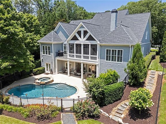 Welcome to 2429 Kirk Lane - A stunning Williamscraft Craftsman-Style Home in the Heart of Kennesaw, Georgia This expansive 7-bedroom, 5-bathroom residence blends timeless craftsmanship with modern luxury, offering an exceptional living experience in one of Kennesaw's most desirable communities. Situated on a beautifully mature landscaped lot, this home features a saltwater pool, spacious backyard, and exterior landscape lighting that highlights the architecture and enhances outdoor ambiance from dusk to dawn. Whether you're relaxing poolside or enjoying an evening gathering, the lighting creates a warm, inviting atmosphere across the yard, walkways, and covered patio areas. A gorgeous covered front porch welcomes guests into a double foyer designed by Wilmont Williams, opening into a thoughtfully designed open-concept living space. The main level showcases rich hardwood flooring and detailed crown molding throughout. The elegant formal dining room seats 12+ and flows seamlessly into the living room, which features vaulted ceilings, custom built-in bookcases, and a stacked stone fireplace with views of the covered rear porch and beautifully lit backyard. The gourmet kitchen is equipped with modern Jenn-Air appliances, Light custom cabinetry, granite countertops, and both a breakfast bar and eat-in area-ideal for cooking and entertaining. The primary suite on the main level includes a luxurious porcelain-tiled shower, whirlpool tub, custom walk-in closet, and direct access to the rear covered porch. An additional bedroom with en-suite bath and a dedicated office complete the main level. Upstairs, you'll find four generously sized bedrooms, including a Jack-and-Jill bathroom, a private en-suite, and a flexible bonus space perfect for a home gym, additional office, or guest retreat. The fully finished terrace level is an entertainer's dream, featuring 10'+ ceilings, elegant crown molding, hardwood floors, and a custom-built bar with an ice maker, dishwasher, multiple refrigerators, and keg tap. Additional highlights include a recreational space with pool table and arcade games, an impressive wine cellar, a spacious bedroom with a full bath, ample storage, and a dedicated workshop. The backyard oasis is perfect for relaxation or entertaining, complete with a saltwater pool, hot tub, raised garden beds, green space, and strategically placed exterior lighting that enhances the overall ambiance well into the evening hours. Located near Kennesaw Mountain National Battlefield Park, downtown Marietta, Marietta Country Club, and a variety of dining, shopping, and recreation options, this home offers the perfect balance of functionality and luxury living.