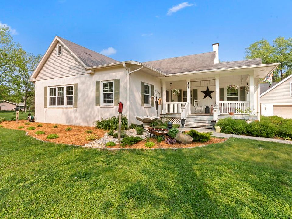 Room to Spread Out!!! Huge Living room w/gas fireplace and limited views of the Fox River! Spacious 3 bedroom, 2 bath home on 1.85 acres! Up-graded Master Bath in 2018, Formal Dining Room, 2nd Den area off Kitchen area, Newer Kitchen with Granite Counters, Walk-in Pantry, Snack Bar, Dinette, Appliances, Plus lower level bonus room. Large Garage (2600 sq ft) with plenty of room, Office/Bedroom/ Apartment area with New bathroom (2019). Garage can hold unto 8 cars. Beautiful lot w/mature trees and a horseshoe driveway, new gravel added in 2014. Chicken Coup already built for you!!! Wetlands are on the north East side of property.
