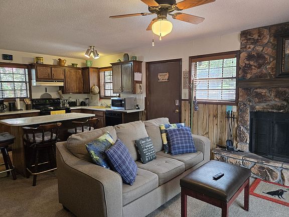 Fully furnished 1+ bedroom cabin with two full bathrooms. Split level floor plan with one dedicated bedroom, plus loft style bedroom. Large fenced yard with covered deck. Easy access to midtown Ruidoso. Wood burning fireplace and in unit laundry. Rent includes minimum water bill. Flexible lease options available. Contact property manager for further details.