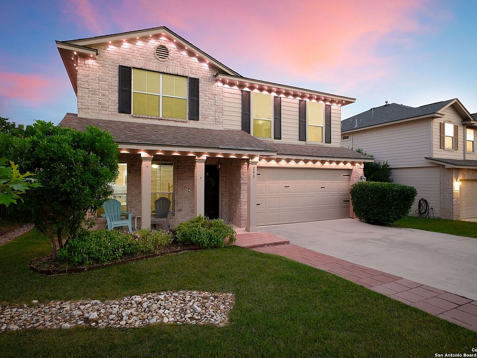 243 Cardinal Song combines spacious living with standout features designed for comfort and style. The centerpiece of the home is a custom electric fireplace set against a bold shiplap accent wall-both modern and inviting, perfect for cozy nights or entertaining guests. The main level flows seamlessly with laminate flooring and an open-concept layout connecting the living, dining, and kitchen areas. Upstairs, all bedrooms are generously sized and feature walk-in closets-ideal for families or anyone needing extra space. The primary suite offers a peaceful retreat with a large layout, dual vanities, and views of the private backyard. Out back, enjoy the serenity of a greenbelt lot with no rear neighbors, a spacious deck with pergola lighting, built-in seating, and a brick fire pit-an ideal setup for gatherings or quiet evenings under the stars. Located near top-rated schools, shopping, and major highways, this home is move-in ready with character and upgrades throughout.