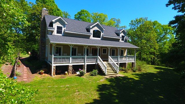 Beautiful cattle farm nestled int he Blue Ridge Mountains. Like new 3 bedroom, 2.5 bath home. In ground swimming pool (16x32), 36x36 horse barn with wash room, tack room and stalls, 36x72 utility barn. Bold stream flows through the property and there are several springs, two ponds and amazing views of Piedmont N.C. The custom built home features with 9 ft. ceilings, custom kitchen with cherry cabinets, heart of pine hardwood floors, over sized double pane windows, floor to ceiling fireplace, master bedroom and laundry on the main level. There is a large rocking chair front porch and a two car carport. The over half mile private drive leads you though the woods, across the rolling pastures to he house nestled in a grove of large shade trees. A spectacular farm.