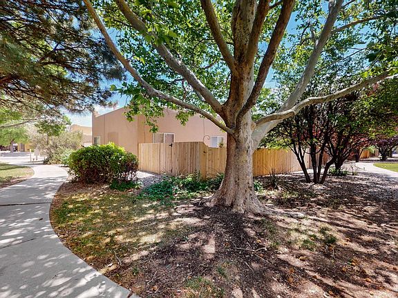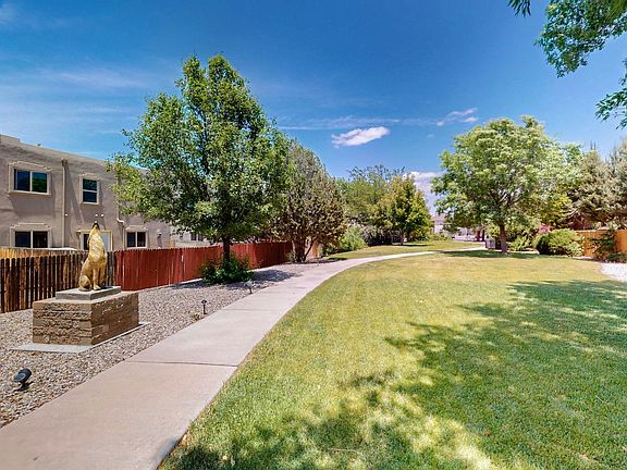 Outdoor Space: A private backyard and patio area offer a serene spot for outdoor dining, gardening, or just soaking up the New Mexico sunshine. It leads to a park on the back of the property.