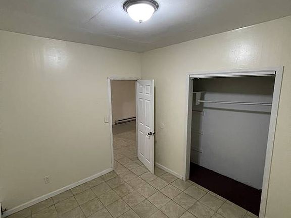 Apartment has a large living room / dining room with stone tile throughout offering street views. The bedroom has a large closet.