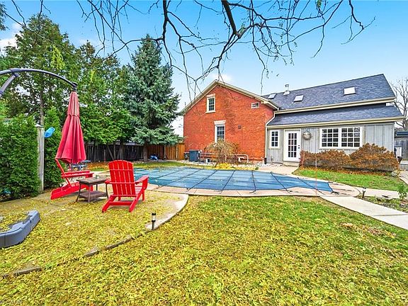 Location, Updates, and Charm! This 1885 double brick home is larger than it appears from the street. Featuring 4 bedrooms, a den, and 2.5 baths, there's plenty of room for everyone. The 2 story board-and-batten addition blends seamlessly with the original structure and includes thoughtful details, such as a repurposed leaded glass window in the mudroom. The chef’s kitchen offers granite counters, a large centre island, slate flooring, and ample cupboard space. The formal living room features original pine plank floors, recessed lighting, and an electric fireplace, while the dining room, accented by a stained glass transom window, comfortably fits a large table. The spacious family room impresses with beamed ceiling, brick accent wall, cozy wood stove, hardwood floors, and two walkouts to the backyard. Two staircases lead upstairs where you'll find a large primary suite with built-ins, and 3 pc ensuite, plus 3 additional bedrooms, a bright den, 5 skylights, and a Jack-and-Jill bathroom featuring a large walk-in shower with built-in bench. Enjoy a 69-foot frontage and a fully fenced yard offering privacy for the heated, inground saltwater pool, deck, two patios, and landscaped gardens. Single car garage and private driveway. Perfectly situated close to downtown Dundas with its shops, cafes, restaurants, and galleries. Just a short walk to the Dundas Little Theatre, Dundas Community Pool and J.L. Grightmire Arena. Close to excellent schools, parks, trails and the Dundas Valley Golf and Curling Club. Short drive to McMaster Hospital/University, Westdale and Highway Access. This is a true gem in historic Dundas.