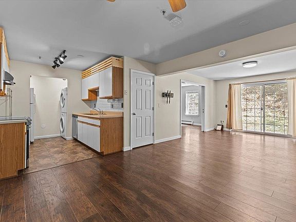 Walk-out ground level 2 bed Riverwatch unit backing up to the woods giving it an abundance of privacy. The unit has an open floor plan with a the kitchen looking out to the dining area and living room. The living room is framed by the large glass slider leading to the home's deck. The main bedroom is tucked off the living room with the home's full bath just out the bedroom door. The second bedroom has pocket doors so it could easily double as an office for those who work from home. Riverwatch has its own community pool and the common land is great for walking dogs or getting some exercise. Just a short walk down the road you will find an award winning BBQ restaurant, an Indian restaurant, Somali inspired cuisine, Dunkin and a Cumberland Farms market and gas. A little further down the road are all of the great shops, restaurants and amenities of Downtown Winooski. Trails leading towards the UVM Medical Center make it easy access for those working at UVM. Only a 10 min walk to UVMMC and campus, 10 min walk to the Intervale and 10 min walk to Winooski This unit is great as a starter home.
