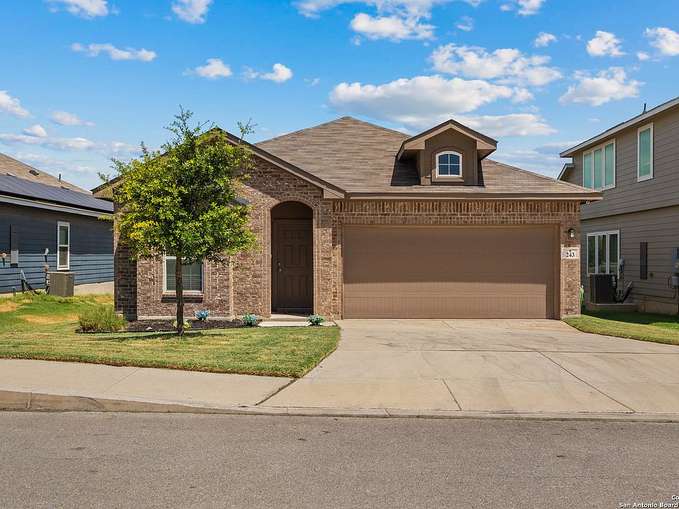 This 3 bedroom, 2 bath home has a layout that just makes sense. The kitchen is the centerpiece - featuring a gas stove, granite counters, and a spacious island that doubles as a breakfast bar for morning coffee or casual meals. The open floor plan flows into a bright living room filled with natural light from oversized windows, creating an easy, comfortable space to relax or entertain. The primary suite offers privacy, while the two additional bedrooms are perfect for guests, a home office, or whatever you need. Outside, there's clean curb appeal, a simple yard, and a two-car garage with extra driveway parking. The location seals the deal - close to shopping, dining, and entertainment, with quick access to UTSA, Texas A&M-San Antonio, SeaWorld, Lackland AFB, and major highways that keep the city within easy reach. It's the kind of home that instantly feels welcoming the moment you step inside.