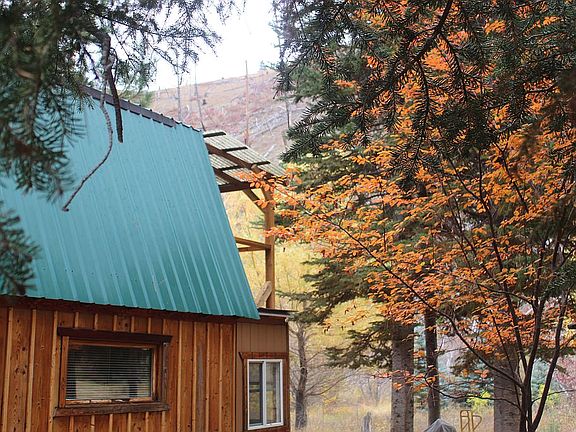 There are two gambrel buildings with two levels. The newer building is turned at 90 degrees to the original. The two buildings are joined by a covered hallway with large pine trees standing between the two buildings in a Frank Lloyd Wright style of displacement and conservation. The first building was constructed in the '90s with timber cut from the lot that it sits on. The first building was intended as a holiday getaway with a wood stove and a wildlife viewing deck on the upper level. The second building was built 8 years later in the same board and bat style, but with some extras like blue pine paneling, heavy beams, carpet, gas filled windows, and propane heat. The second level of the newer building is unfinished. This area is suitable for two more bedrooms or a large master suite of over 500 SF. There is a very nice underground sprinkler system that takes water out of the creek. Also a 40 foot well with the cleanest natural water you can find. This property is zoned for horses or other livestock and pets. The year around creek facilitates the day to day maintenance of your animals. We kept two horses and there was plenty of feed and water throughout the summer. Local ranchers are happy to share their excess hay at reasonable prices for winter feed. There is a second all steel garage enclosed on three sides that could be used for hay storage and tach or other equipment. Arguably, this second 10' x 20' modular garage could be considered private property valued at $3,000. This property has an underground sprinkler system with irrigation pumps that take water from the year around creek. There are numerous garden spots and lots of flowering bushes and trees. There are daffodils and tulips in the spring and wildflowers throughout the summer. This property is priced to sell at $20,000 below the Zestimate in this fast moving market. With the $20,000 repair allowance, the buyer is responsible for any repairs or upgrades required by their source of financing. All appliances are included and two significant items of personal property are included: 250 gallon propane tank with both 1st stage and 2nd stage regulators valued at $800 and an approximate 8' x 16' above ground storage unit valued at $1,000. In consideration of the personal property, the buyer will pay for title searches and title insurance as required by their source of financing. The seller will split the closing costs.