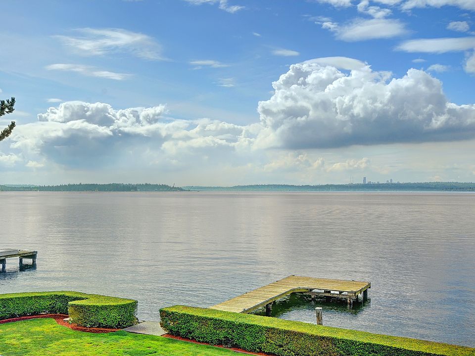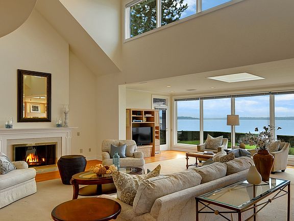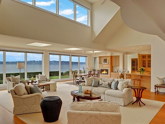Spectacular Bender-Chaffey custom home on sought after Lake Avenue West. Breathtaking western views of Lake Washington, Seattle and the Olympic Mountains. Timeless quality and design. Beautiful gated courtyard entry. Outstanding great room concept features gorgeous hardwoods, floor to ceiling windows and skylights that flood the home with natural light. Sumptuous main floor master with fireplace. Coach house above the garage is perfect for office or guests with three quarter bath. Lush level backyard with 100 +/- feet of waterfront and private dock.