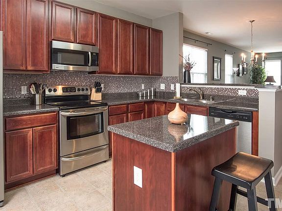 Sunny 3 stry end unit TH w/garage in Cary! 1st fl study/BDRM w/full BA. Main fl is open w/laminate hrdwds, large KIT w/center isle, tons of cabinets, pantry, breakfast bar to dining rm. Fam rm is spacious w/corner gas FP. DR flows between KIT & Fam Rm for nice entertaining spaces. Grilling deck off KIT. Upstairs offers huge master w/full bath & His/Hers WICs. 2nd Bdrm has a priv bath. Garage is extra wide w/plenty of storage. Community pool and easy access to 540 make this a wonderful place to call home!