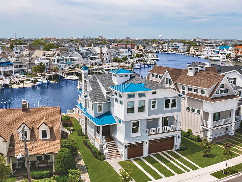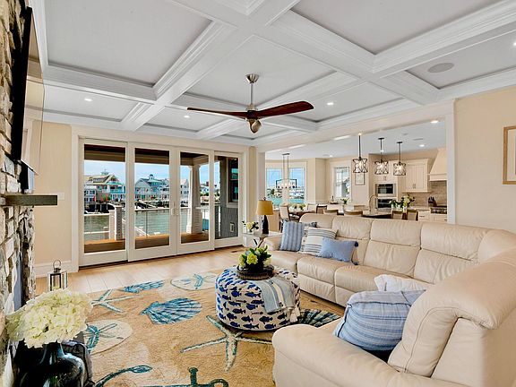 Nestled in the coveted "Gardens Section" of Ocean City, the illustrious North Point Lagoon, affectionately known as the Coast Guard Lagoon, cradles this stunning six-year-old abode. With five bedrooms and 6.5 bathrooms, this lagoon-front masterpiece awaits your presence! Its grand custom architecture and breathtaking exterior beckon you with elegance and grace, leading you into a world where amazing Bay Views and luxurious details are crafted for the ultimate coastal lifestyle. The gourmet kitchen, adorned with Wolf appliances, a Wolf steam oven, and a Subzero refrigerator, promises culinary adventures, while a dedicated Grilling Deck invites alfresco delights. The Primary Bedroom Retreat, a sanctuary of opulence, offers a private terrace with sweeping lagoon vistas, a warm fireplace, a lavish bathroom with dual vanities, and a vast walk-in closet. Four Junior Suites, each with its bathroom, await guests, as does an office/study and a third-floor family room with an expansive deck gazing over the shimmering waters, complete with a full bath and a cozy fireplace. Enhanced with features like heated hardwood and tile floors, multiple fireplaces, and tray ceilings, the home is comfortable with multi-zoned heat and air. It's smart home design seamlessly integrates with your lifestyle, while an elevator graces every level for convenience. Outside, revel in the beauty of a newer bulkhead (2018), two boat slips, a shower cabana, multiple decks, and the luxury of a three-car attached garage with ample driveway parking. Bring your boat and let your soul be serenaded by the magic of sunrises and sunsets from the Dock On The Bay at this artful haven, tailor-made for your enjoyment!