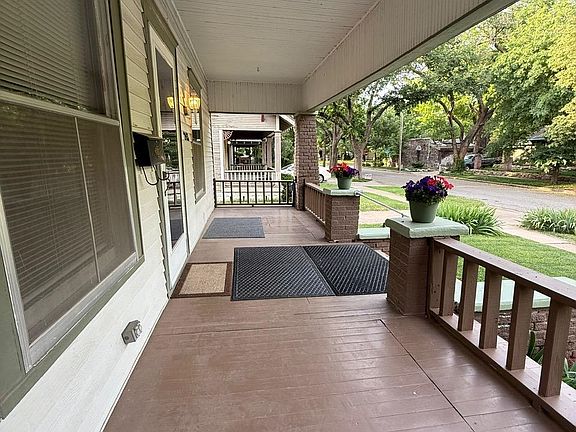 Absolutely gorgeous move-in-ready 2 bedroom, 1 bath bungalow with wood floors and woodwork, built -in cabinets & bench seats, large lighted closets, main floor laundry, half basement, 1 car detached garage and fenced backyard. All the windows in this house open!! 26x8 covered front porch. New Class III roof. Updated electric panel. Steel siding. Dining room rug, range and dehumidifier in basement remain with house. Fireplace is decorative only, chimney has been removed and gas line disconnected. Back of house is being professionally painted Monday 6/16. This home has a shared driveway. Long term owner of house to north graciously permits daily and overnight parking at front of driveway for easy access to front door but will not allow permanent blocking of driveway between the houses. Agreement of record in docs. Preliminary title started at Kansas Secured Title. Listing agent is related to the sellers. Easy to see!!