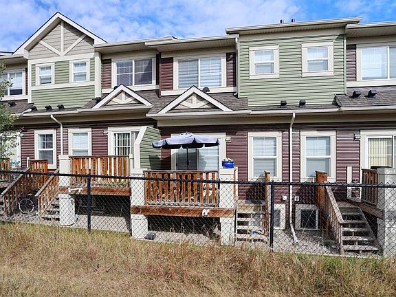 Location, location, location! Backing onto a winding pathway & ravine in Sage Hill is this beautiful condo in the VERONA TOWNHOMES project from Trico Homes. Drenched in natural light, this wonderful 3 bedroom / 2.5 bath home has upgraded laminate floors & granite countertops, oversized single garage, sunny backyard deck & prime location just minutes to the Sage Hill Crossing retail centre. Offering maintenance-free living so you can enjoy the finer things in life, you’ll simply love this fantastic townhouse with is bright & airy living room with 9ft ceilings, expansive windows & deck. The 9ft ceilings continue into the open concept kitchen & dining room with granite counters & soft-close cabinetry, island & Whirlpool stainless steel appliances. On the way up to the top floor bedroom level is the landing with laundry closet complete with stacking Whirlpool washer & dryer. Both of the bedrooms are a terrific size & have their own private ensuites; the primary bedroom has a wall-of-closets & ensuite with granite-topped double vanities & walk-in shower. The 2nd bedroom has a walk-in closet, ensuite with shower/tub combo & views of the ravine. A big 3rd bedroom is on the ground level…which could easily double as your home office. Additional extras & features include custom window blinds, natural gas line for your BBQ on the deck, underground sprinklers, Decora switches & oversized/drywalled 1 car garage plus extra parking on the driveway. Pet-friendly complex with loads of visitor parking & playground for the kids, & the monthly condo fees include grass cutting & snow removal. Top-notch location in this popular Symons Valley community only a short drive to major retail centers & quick easy access to Stoney/Deerfoot/Beddington Trails to take you to the airport, Cross Iron Mills, all area amenities & downtown.