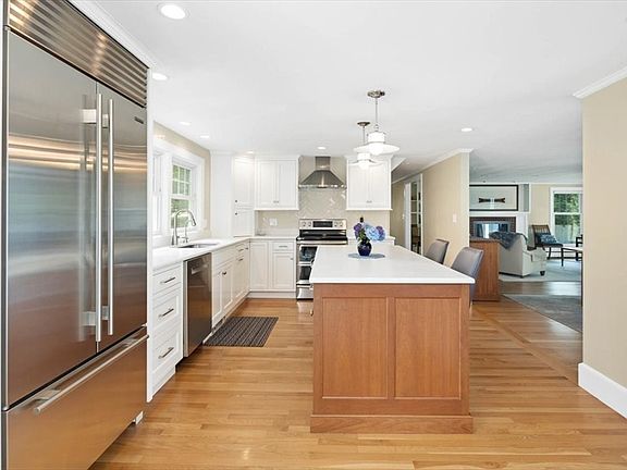 ALL offers due Mon. at 10AM. METICULOUS cape in the desirable Marshfield Hills village! Sunlight pours in to the upgraded kitchen with subzero refrigerator, stainless appliances and an island with plenty of seating. The kitchen opens to a cozy den, the bright dining room and expansive living room with a wood burning fireplace, custom cabinetry and a wall of windows overlooking the well manicured lawn. Spacious bedrooms on the first and second floors with plenty of closet space and custom built-ins along with updated baths, walk in cedar and storage closets offer great versatility for today's lifestyle. The large, finished lower level is perfect for a playroom or office and the laundry room offers enough space for your craft or sewing room. Relax and/or entertain outdoors on your patio, in the large, screened in gazebo or on your expansive professionally landscaped yard.Two car garage, mini-split a/c systems, irrigation, generator and close to ice cream, general store, library and park!