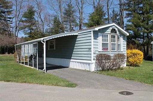 Ready for new owners. Updates include roof, windows, furnace, walk in shower. All appliances included in this one owner home with fabulous enclosed porch in rear overlooking natural setting. Park fee includes water, sewer, cable, taxes, snow and trash removal