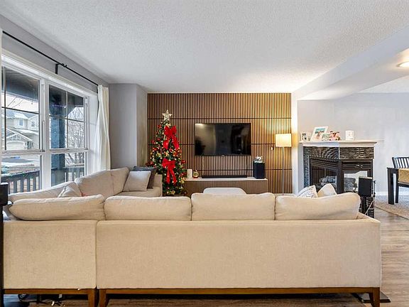 Welcome to a beautifully cared-for home in one of SE Calgary’s most loved communities. This inviting 2-storey sits on a quiet street in New Brighton and delivers the ideal blend of comfort, style, and value — perfect for first-time buyers, small families, or anyone ready to step into a detached home without compromise. Inside, you’ll find a bright open main floor with newer flooring, and a warm 3-sided fireplace that anchors both the living and dining areas. All appliances were updated in 2023, giving you peace of mind and modern efficiency. The flow is natural, functional, and made for real life. Large sliding doors lead you to a spacious deck and a fully fenced, landscaped backyard — already complete with a double detached garage built in 2024 for secure parking, storage, or a future workshop. Upstairs features three bedrooms, including a generous primary with a walk-in closet. The lower level is undeveloped and ready for your vision, whether that’s a family room, gym, office, or additional bedroom. Homes in this condition at this price point don’t sit long in New Brighton. This one checks every box: updated interior, great layout, new appliances, new garage, quiet location. Come see why this is the starter home everyone will be talking about.