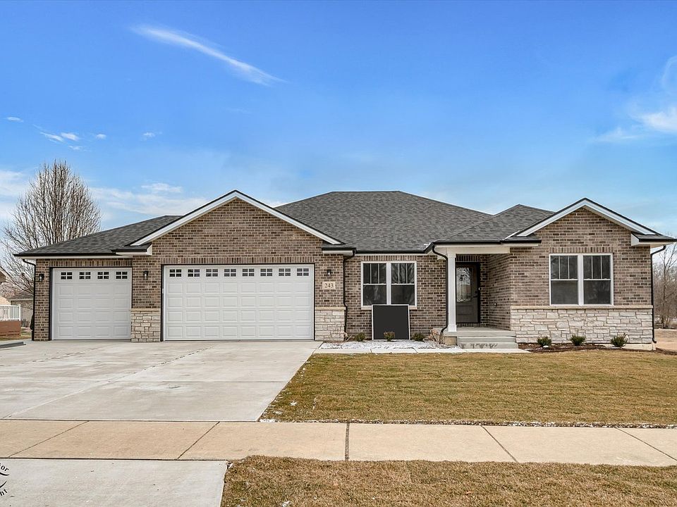 This new-construction ranch home in the Carey Glen neighborhood is move-in ready and a commuter's dream, just minutes from I-57. This home checks all the boxes: open-concept great room w/fireplace adjoining the living, kitchen, and dining areas, custom cabinetry, stainless steel appliances, split floorpan separating primary and secondary bedrooms, custom cabinetry, storage galore, spacious 3-car garage, and sunny lookout basement, ALL situated on an enormous private lot!