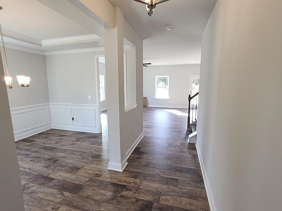 Located just 35 minutes from Fayetteville and 15 minutes from downtown Sanford! Very open and spacious downstairs with an open kitchen concept. Large Master bedroom that will also include an upgraded tub and shower combo (tiled shower). Wainscotting/trey ceiling and crown molding are included in the dining room and a trey ceiling/crown molding ceiling in the master. Upgraded cabinets throughout, laminate flooring package throughout the main living area. Massive side yard and flat backyard!