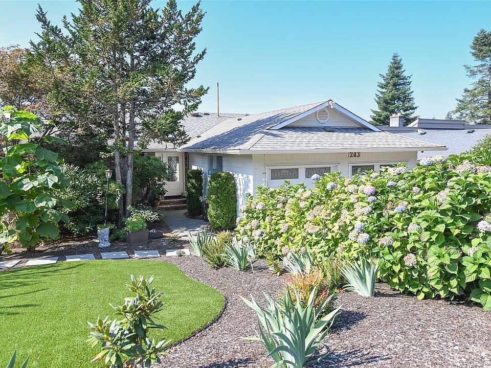 Looking for the perfect setup for adult children, in-laws, or extended family? Welcome to 243 Stafford Avenue, a beautifully updated walk-out rancher on a quiet no-through road—steps from North Island College, the hospital, and Queneesh Elementary. Enjoy stunning views of the Comox Valley, Mt. Washington, Comox Glacier, and Forbidden Plateau. With 2,500+ sq. ft. on two levels and 3 baths, this home has been extensively upgraded with new siding, vinyl windows, R60 insulation, skylights, sliding glass doors, heat pump, a furnace, hot water tank, and a 24-panel solar system—plus a Tesla 'off the grid' power supply backup battery system for power outages. The lower level offers suite potential with a kitchenette, while outside a covered patio, cedar 'good neighbour' fencing, ponds, patios, and irrigation create a private garden oasis. Close to the Aquatic Centre, Crown Isle shopping, cafés, and Dingwall Steps, this home perfectly blends lifestyle, location, and comfort.