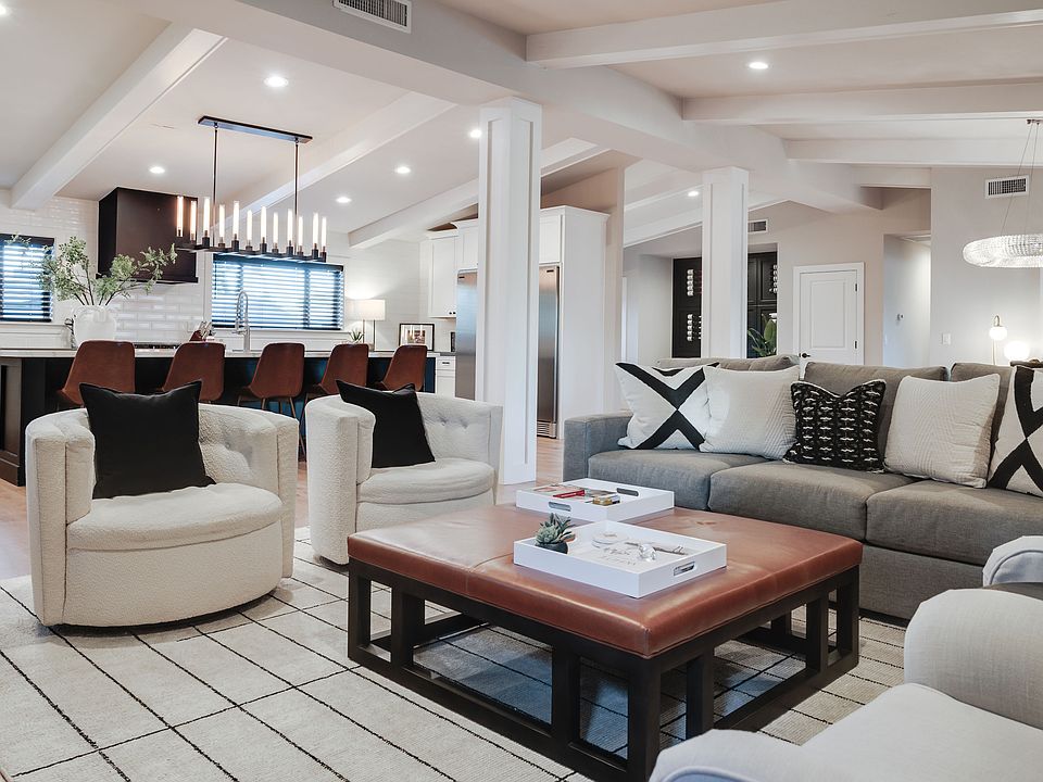 Sparkling poolSplit floor-planModern eleganceCorner lotLush turfDedicated home officePrivate gym
