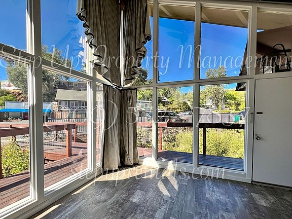 Located within minutes of walking to a grocery store, Rotary Park, and Historic Downtown Sonora, you'll find this one of kind updated cottage situated in a mountain side above a year round creek. Upon walking up the newly installed deck you'll note the floor to ceiling windows that allow in an abundance of natural light. But don't worry, these windows have custom installed drapes to provide privacy and to fend off unwanted cool temperatures or excessive heat! The large windows and high ceilings create an open feel in this highly efficient floor plan which includes a living area, sleeping loft, kitchen, full bathroom, laundry area equipped with a stacked washer/dryer and many storage cabinets. This home also offers three wall a/c units; one in the kitchen area, one in the living area, and another in the second story loft. And when winter arrives, the newly installed efficient propane wall heater will keep this entire unit warm and cozy! Once in the kitchen you'll find that this unit offers a dishwasher, garbage disposal, refrigerator, electric range/oven, and microwave for all your cooking and cleaning needs. The sleeping loft can be accessed by a custom built wall ladder inside but it also has an easy access from the outside with a back door and private patio.