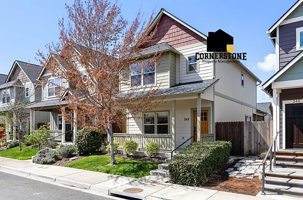 Newer well-maintained 3-bedroom, 2.5-bath home in Talent's Clearview neighborhood. Built in 2014, this 1,422 sq ft home offers an open floor plan with a spacious great room. Embrace the elegant charm of this rental property, complete with tile floors in the bathrooms and vaulted ceilings. Hard wood floors in the main living and dining room, and carpet in the bedrooms creating a cozy atmosphere. The home has wood flooring in the living room and new carpet in bedrooms.