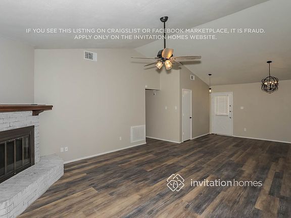 Home Features and Amenities: Air Conditioning, Fenced Yard, Fireplace, Garage, Granite Countertops, Long Lease Terms, Luxury Vinyl Plank, Patio, Pet Friendly, Smart Home, Stainless Steel Appliances, Tile, W/D Hookups, and professionally managed by Invitation Homes.