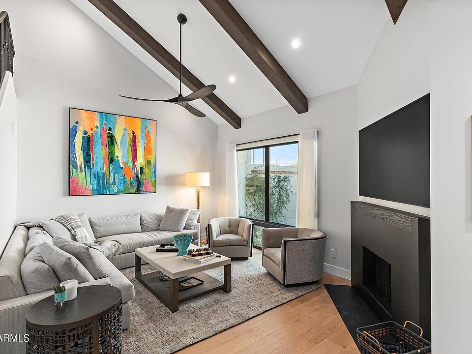 Biltmore townhouse transformed through meticulous renovation. Taken down to the studs, raising ceilings, enlarged openings to maximize natural light. Walls & ceilings insulated w open & closed cell foam for thermal efficiency. All windows & doors replaced w Milguard C650. Upgraded w solar power, water filtration t/o, 2 HVACs. Beautiful shaker cabinets, Quartzite counters, GE appliances, Kohler fixtures, w hand painted tiles in kitchen. Soaring ceilings in living room w/ metal fireplace surround. Custom wrought iron banister w hand painted tile accents leads to Primary suite w spacious bath, walk in closet, plus laundry room & office nook. Lush backyard w turf lawn, charming fountain, new lighting & drip system. This property was carefully designed blending luxury w modern technology