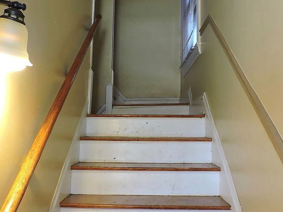 Each bedroom is equally spacious and filled with natural light. The unit features two outdoor patios and original architectural details throughout. Recent updates include fresh paint in the main staircase and bedroom areas (not shown in photos). Rent includes water, sewage, and on-site laundry. Limited off-street parking is also available.