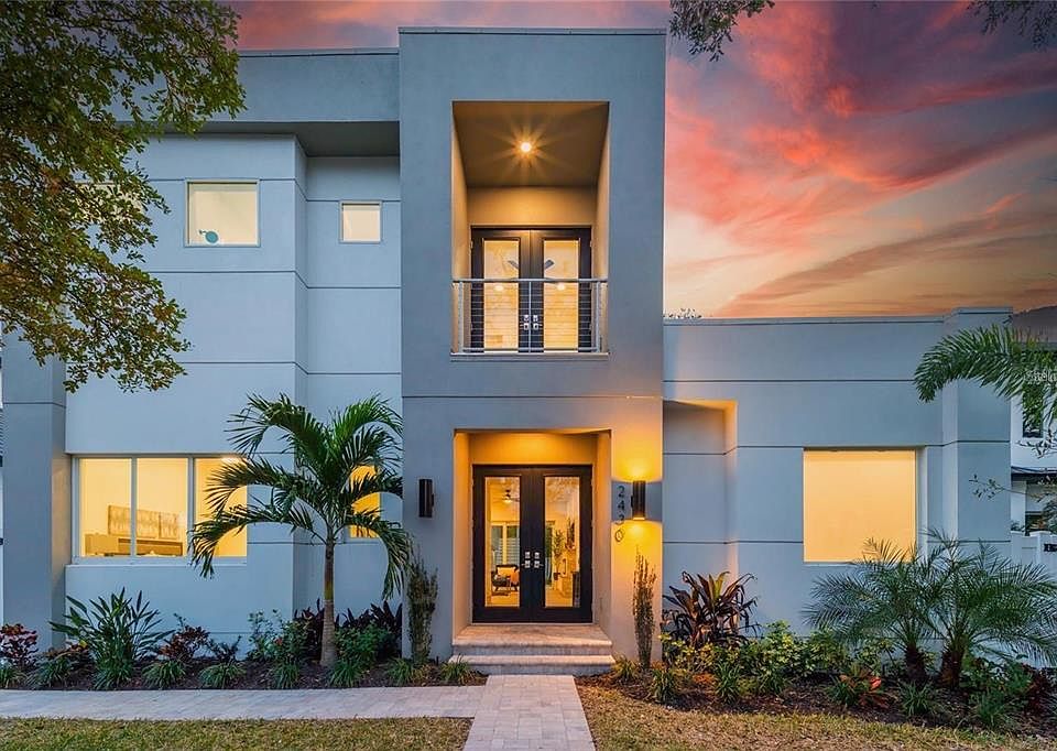 Introducing an exquisite new construction home in the heart of Sarasota, just minutes from downtown and walkable to Arlington Park. This 2,743 sq. ft. modern residence offers 6 bedrooms and 4.5 baths, including a rare detached accessory suite—perfect for hosting guests, accommodating extended family, creating a rental opportunity, or setting up a private office. Inside the main home, an open and light-filled floor plan showcases elegant finishes and a direct view of the pool. The chef’s kitchen features Bosch appliances, quartz countertops, custom cabinetry, and a walk-in pantry, flowing seamlessly into the living room and out to an expansive patio with an outdoor kitchen, paver pool deck, and lush landscaping for effortless indoor–outdoor living. The first-floor primary suite is a luxurious retreat, complete with high ceilings, a serene pool view, an oversized walk-in closet, and a spa-inspired bathroom with soaking tub, separate shower, and designer finishes. For convenience, a stacked washer/dryer is tucked into the suite, complemented by a full laundry room upstairs. Porcelain tile floors span the first level, which also includes a guest bedroom, while the stairs and the second level features engineered hardwood, three additional bedrooms, and multiple balconies. Built to the latest codes, this home offers peace of mind with energy-efficient systems, impact-rated windows and doors, modern insulation, and storm-ready construction—delivering lower utility costs, reduced maintenance, and lasting value. Perfectly situated between Siesta Key and Downtown Sarasota, you’ll enjoy quick access to award-winning beaches, fine dining, shopping, and cultural attractions. Whether you’re entertaining by the pool, enjoying a night out, or unwinding at home, this property offers the ultimate Sarasota lifestyle.