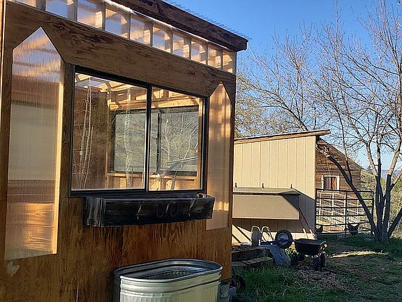 Picture a beautiful serene country setting with a fenced 3.19 acre parcel and a freshly painted white farmhouse with bat and board siding, black trim and new windows. Add a detached 24 x 32 double garage/shop with 200 Amp service, barn, green house and a chicken coop and you have the perfect place to call home. Kitchen features double wall ovens, propane cooktop and farmhouse style open shelving. Two bedrooms are located on the main floor and a third with egress window in the basement along with a family room and large craft room. Outside stamped concrete patio lends itself to summer BBQ's and fun gatherings. Property is irrigated with underground sprinklers. Don't miss out on a great opportunity to own a slice of heaven!!