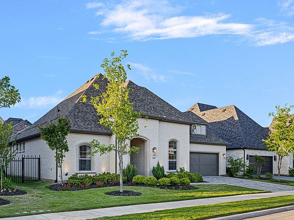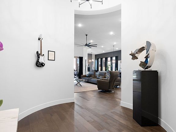 Timeless elegance and modern comfort in this beautifully crafted one-story partially furnished home, nestled in the prestigious Mustang Lakes community. Designed for both everyday living and effortless entertaining in mind, this thoughtfully laid-out home offers three spacious bedrooms—with en-suite bathrooms—providing plenty of privacy and room to spread out. At the heart of the home, the stunning gourmet kitchen opens seamlessly to the expansive living and dining areas, all bathed in natural light. Outfitted with top-of-the-line appliances, custom cabinetry, a generous island, and a walk-in pantry, the kitchen is perfect for both casual meals and lively gatherings. The open living area features sliding glass doors that extend the living space outdoors to a large, covered patio with a cozy fireplace—ideal for relaxing or hosting guests year-round. Just beyond the dining area, a charming hearth room offers a quiet retreat, while the nearby media room, perfectly situated next to the beautifully appointed wet bar, sets the stage for movie nights or game-day entertainment. A dedicated study provides space to work from home. Escape to the private owner’s suit, featuring an extended bay window with space for a sitting area, and a spa-inspired en-suite bath with dual vanities, a soaking tub, and a separate walk-in shower. The Texas Basement has been finished out as a private escape to meditate, relax, exercise and recoup. Landscaped backyard includes a 20000.00 hot tub that conveys with the property. 3 car tandem garage with epoxy floor and electric charging station. This home is conveniently located steps from the neighborhood firepit and pond with catch and release fishing. Mustang Lakes community, residents enjoy access to resort-style pools, state-of-the-art fitness center, tennis courts, walking trails, private lakes, an elegant clubhouse, pocket parks and firepit with cornhole.