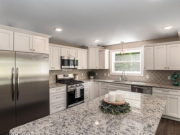 This stunning private estate has so much to offer! Nestled on 5 acres with a paved winding driveway, large pond, and a tree lined lot this home is ideal for those seeking privacy and grandeur. With 4,500 square feet, 4 beds, and 2.5 bathrooms there is room for the entire family. You will appreciate the grand 2 story entrance, open concept great room, large entertaining room, multiple garages, and master suite with walk in closet and oversized 5 piece bathroom. The entire home has recently been renovated with a new HVAC system, central air, luxury vinyl plank flooring, carpet, paint, fixtures, bathrooms, and kitchen. The spacious white kitchen is a show stopper with granite counters, grey tile backsplash, shiplap island with seating, and an oversized double fridge and freezer. The entertainment room provides a large bar with granite, wine storage area, vaulted ceilings, 2 story fireplace, and plenty of floor space for oversized furniture and tables. This rare find is a must see!