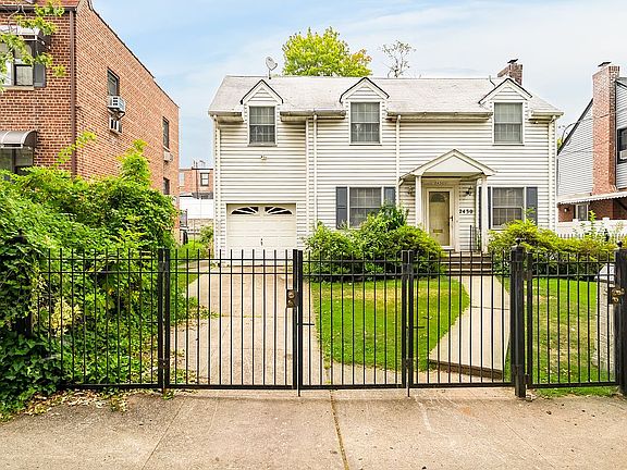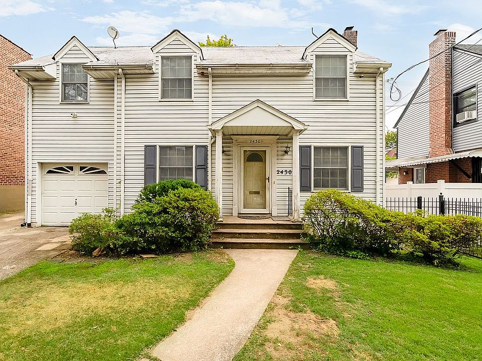 Nestled in the highly sought-after Pelham Parkway area of the Bronx, this diamond in the rough is ready for a skilled and loving homeowner to restore its charm and unlock its full potential. This exquisite Dutch Colonial home features an elegant Greek revival portico and is located on a sprawling 50x100 lot. Gated front yard with driveway and garage parking. Large backyard perfect for connecting with nature or family. Close proximity to parks, hospitals, and transportation options, including the #5 & #2 subway lines and express buses offering quick access for Manhattan commuters. On the inside, this home welcomes you with a formal living room on the left of the house and a formal dining room adjacent to an open kitchen on the right-hand side. A U-shaped kitchen offers plenty of counter space for a multitude of scenarios - from cooking to entertaining. Three generously sized bedrooms are complete with ample closet space and allow for plenty of natural sunlight. The upstairs bathroom is also well-sized and features a skylight. The utility basement has high ceilings with both internal steps leading to the main floor and egress to the back yard through a separate entrance. DEVELOPER POTENTIAL - The 50 x 100 double lot footprint with R4A zoning and a Max FAR of .75 should allow for additional potential living sq. ft. up to 3,750 sq. ft. (5,000 sq. ft. footprint x Max FAR of .75 = 3,750 sq. ft. of living space; enough for potentially two 1,875 sq. ft. 2-family homes, assuming no additional zoning restrictions apply – building potential must be independently verified with your architect or other zoning professional.)