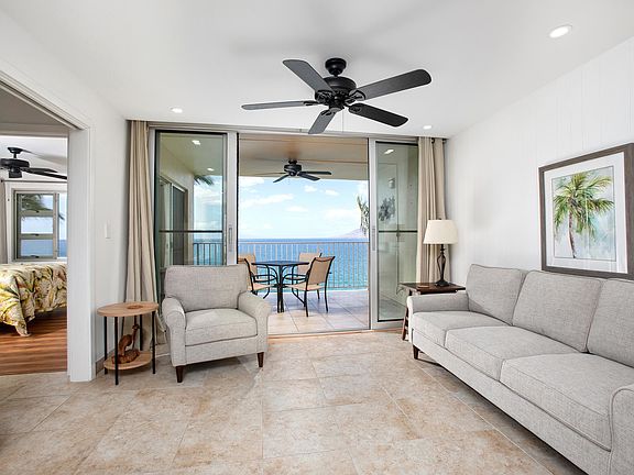 Welcome to Royal Mauian 612, where the soothing sound of waves and breathtaking ocean views create the perfect backdrop for your next chapter. As you step inside this beautifully renovated 2-bedroom, 2-bathroom condo, you'll immediately feel the warmth and comfort of home. The living space invites you in with its fresh, modern design. Newly skimmed and painted walls, along with recessed lighting, create a bright and airy atmosphere that's perfect for both relaxation and entertaining. The stylish furnishings-a new couch, chair, TV stand, and dining set-offer a blend of comfort and elegance, making it easy to unwind after a day at the beach. The heart of the home, the kitchen, boasts brand-new appliances including a refrigerator, dishwasher, and a convenient washer/dryer. Whether you're preparing a gourmet meal or enjoying a casual breakfast, this kitchen is ready for all your culinary adventures. As you explore further, you'll discover the two inviting bedrooms, each adorned with new flooring and drapes. The primary bathroom has been fully remodeled to provide a luxurious retreat, while the back bathroom features a sleek new vanity and mirror, combining style with functionality. Step outside to the beautifully tiled lanai, a space that has been carefully waterproofed, allowing you to enjoy the stunning views without worry. Picture yourself sipping your morning coffee or savoring a sunset cocktail in this serene outdoor oasis.