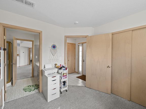 The first-floor owner suite includes a walk-in closet and private full bath. A second bedroom also connects to a full bathroom, making it ideal for guests or a home office. Additional features include first-floor laundry and updated paint and carpet.