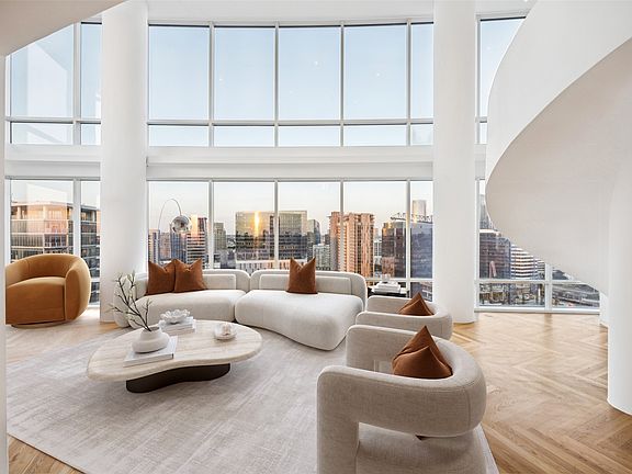 Floor-to-ceiling windowsLimestone paversPrivate terracesItalian calacatta michelangelo marbleBespoke wicOak herringbone floorsModern spiral staircase