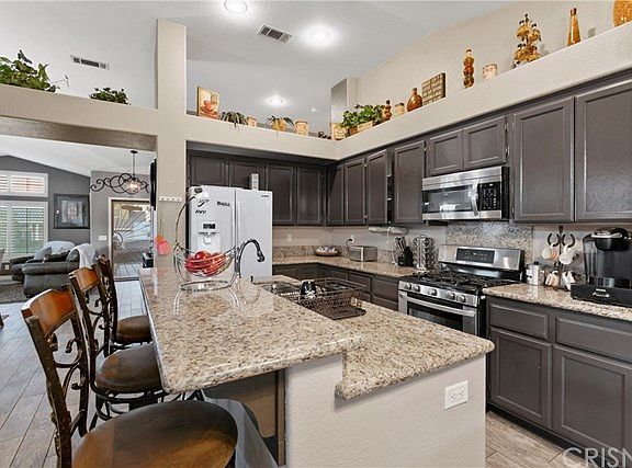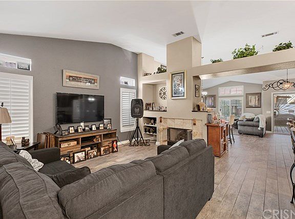 Beautifully updated single story home with RV Access!!!! Formal living and dining rooms with wood look tile flooring, modern two ton paint, vaulted ceilings and plantation shutters. Updated kitchen with stainless steel appliances, granite countertops, breakfast bar and dining area. Kitchen open to the family room with vaulted ceilings and fireplace. Master suite with ceiling fan and slider to rear patio, dual vanities and large closet. Full length rear patio, block wall fencing and paved and gated RV access.