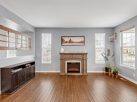 Cascading with abundant brightness, this ranch-style home offers a Cross Creek retreat. Positioned on a corner lot, a covered front porch faces a neighborhood park inspiring a serene setting. Natural light beams throughout an open floorplan wrapped in a soothing color palette. A fireplace centers a formal living room crafting an inviting ambiance. All-white cabinetry adorns the kitchen complete w/ stainless steel appliances and an island w/ seating. A spacious living area presents plenty of room for entertaining. Sliding glass doors in a sun-filled dining area open to an expansive back deck overlooking a large, fenced-in backyard w/ mature landscaping. Escape to the primary bedroom complemented by an en-suite bath. Two additional bedrooms share a second full bath. Downstairs, an unfinished basement presents endless possibilities for personalization. An attached 2-car garage offers additional storage. This home offers proximity to Vista PEAK Exploratory School, Clubhouse/Pool, and Aurora amenities.