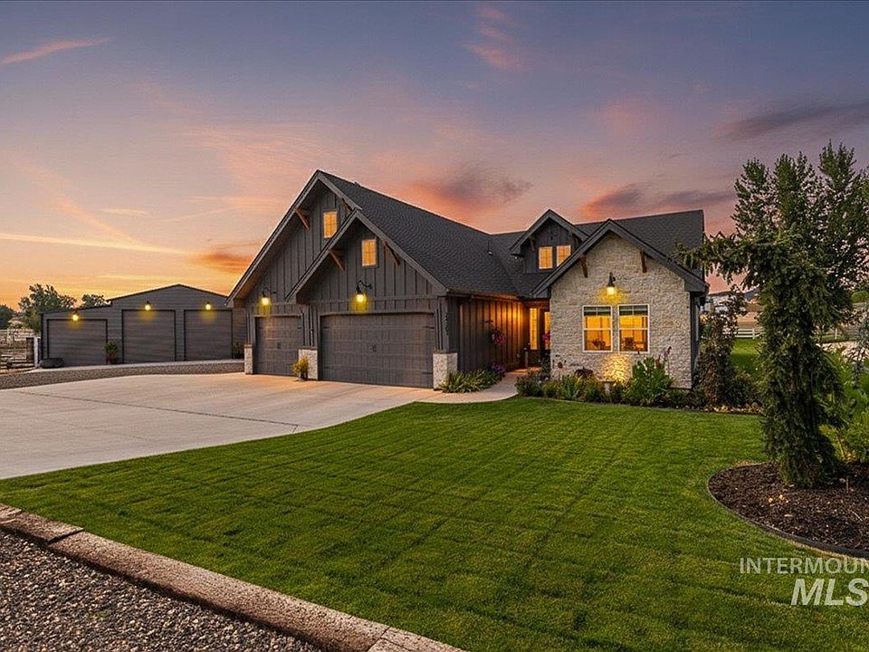 This beautiful custom built home by Maddyn Homes on over 2 acres, in Middleton on a quiet dead end street cannot be beat! Property is set with meticulously manicured landscaping, raised garden boxes, fruit trees, berry bushes, fully fenced pasture divided into thirds, covered horse stalls, 2,000sqft shop with electricity, 2 10'x10' RV doors & 1 12'x10' RV door; fully capable of holding all your feed & toys! Inside your new home you'll find gorgeous custom details from the engineered hard wood & tile flooring. Cathedral ceiling with wood beams in the family room, pellet stove with grand floor to ceiling stone work, fantastic lighting throughout & unbeatable craftsmanship. Fully insulated spacious 3 car attached garage with epoxy flooring with enough room for all your extra tools you don't want out in the shop. Come and enjoy the hard to beat Idaho sunsets & some peace and quiet on your expansive covered patio at your new homestead on Wanda Way! Check out the features list under the docs tab too! *No sign in yard.