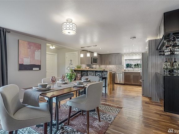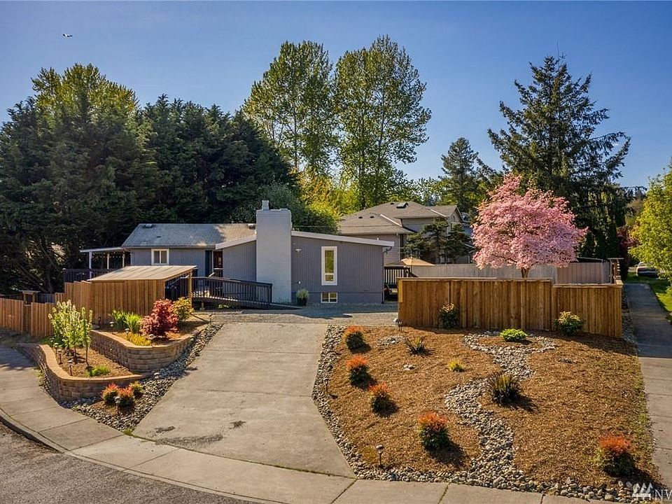 This mid-century home has received a stunning update! Let the wood floors guide you through the open layout that captures a view from every room. Master suite boasts a bath ensuite w/ private access to the wrap around deck. The kitchen has stainless appliances and a custom cabinet system. Fully stocked lower level, with full kitchen and two additional bedrooms???perfect for multi-family living. Multiple outbuildings, RV parking, and covered carport. Easy access to the freeway and nearby schools!