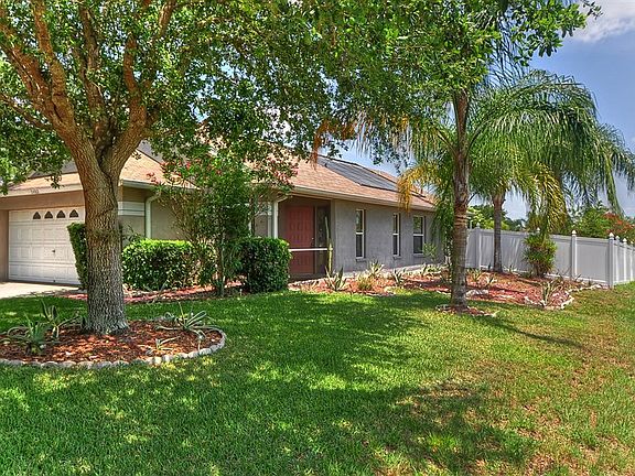 Oak Grove Subdivision ... extremely convenient location.. HOA fee of $153.00 per year! This 3 bedroom, 2 bath POOL home is located on a prime lot with no immediate back yard neighbors!! As you drive up you will notice the great curb appeal, there is landscape lighting, 5 queen palm trees, oleanders and a beautiful garden. The interior features WOOD floors in the great room and hallway, tile in the kitchen & baths & carpet in the bedrooms ( 2 years old). The kitchen has been remodeled with walnut colored raised panel cabinets with crown molding, granite counters, newer appliances including a 5 burner gas convection oven, double door refrigerator, space saver microwave and dishwasher. The sink has a brushed nickel faucet. The hall bath has a new wood vanity with solid surface counter and sink, marble back splash and framed mirror. The owners suite features a garden tub and walk in closet. Out back there is a screened solar heated salt water pool with pavered deck. The pool has upgraded lighting (multiple different colors), an automatic drain, built in bench with jets & child protection fence. The central heat & air was replaced approximately. 4 years ago. All windows and doors have hurricane film. There are also gutters, a sprinkler system and a security system. The front covered lanai is also screened in, great for opening doors for cross ventilation. There is also an upgraded white vinyl fence.