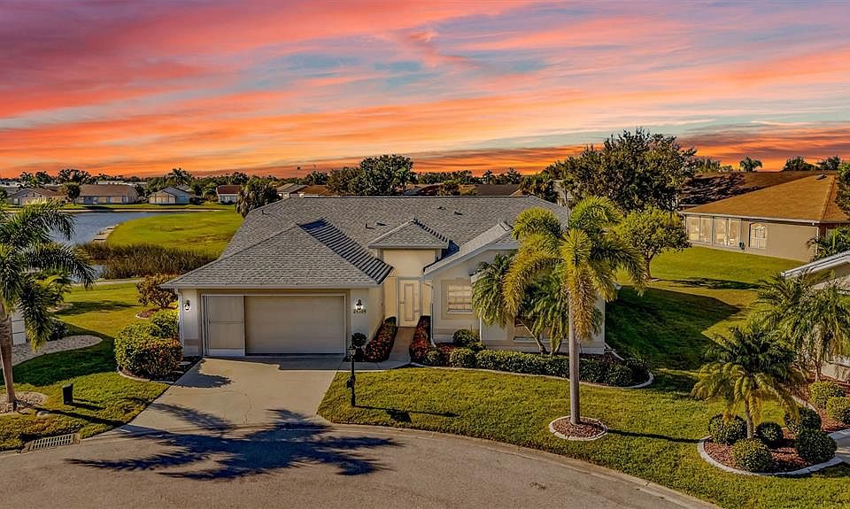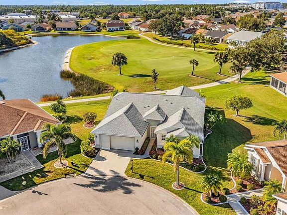 One or more photo(s) has been virtually staged. VERY LARGE home at the end of a cul-de-sac with gorgeous view of pond that splits holes 7 & 8 in the gated golf course/active resort of highly desirable Kings Gate, a 55+ community that is NOT in a flood zone and DOES NOT require flood insurance. Tons of updates to this home including 2023 Roof, 2022 AC, 2024 HWH, large bonus room addition - great as a 2nd TV room, bar, entertainment space - whatever fits your lifestyle. Kitchen has been updated as well and features gorgeous Quartz counters with SS appliances. A paver patio out back, plantation shutters and a thermaseal in attic are a few more of the many updates here. Ideal location inside of Kings Gate on a very quiet cul-de-sac street and with nice curb appeal. Step inside the screened entry way and then into the house and you'll notice the large living room/dining room combo that leads out to the lanai - with the gorgeous pond/golf course view just beyond. The VERY SPACIOUS kitchen features an eat-in area and connects seamlessly with the family room that also leads out to that lanai and view. That lanai connects to the bonus room as does the master bedroom. This very spacious bonus rooms features AWESOME views of the pond & golf course and offers access to the paver patio. WOW - so many places to entertain and/or relax here. The master bedroom features his/her closets and a master bath that has separate tub & shower and dual vanities. Guest wing is at the front right of the home and has a built in wall/murphy bed in one of the rooms and sensational built in office in the other. And if you haven't been to Kings Gate before - you're going to love the options for activity (Olympic size heated swimming pool and spa, tennis courts, pickle ball, lawn bowling, shuffle board, bocce, horseshoes, gym, billiards, library, euchre, bingo, bridge, Texas hold em, poker, mahjong and more). The onsite AND NEWLY REMODELED Lions Den restaurant and bar is super convenient and also offers Tuesday night Karaoke and monthly trivia contests. Many residents love the fact that they are just a golf cart ride away from the shopping plaza that provides you access to grocery store (ALDI), drug store, bank, restaurants and shopping. Want to explore outside of Kings Gate – you are minutes away from the restaurants and shops of downtown Punta Gorda and Fisherman's village. And if you want to explore more of Florida's fun spots you’re near I75 to quickly head north or south. An AWESOME home with TONS OF UPDATES and a SENSATIONAL view in a PREMIER gated community that DOES NOT REQUIRE FLOOD INSURANCE needs to be on your list. Call today for a private showing and a golf cart tour of the community/amenities.
