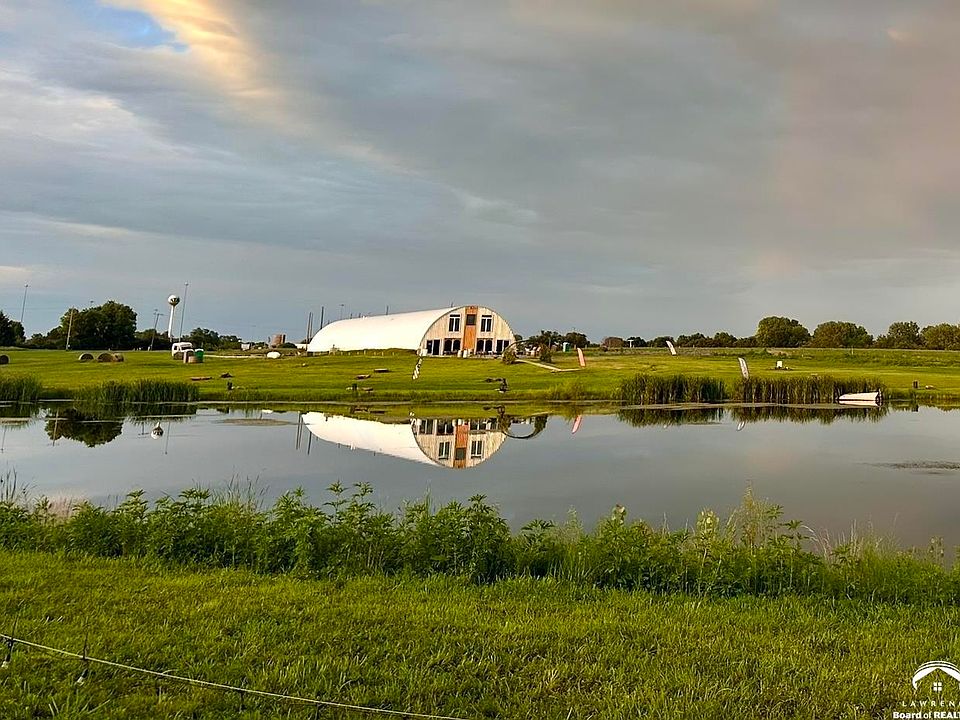 Truly a distinctive property on 86 + acres! A short 14 minutes from North Lawrence. If you have been looking for a startup, relocation or expanding your business this property is exceptional. Now is the time to make your move with the future plans for the new Chiefs stadium. Currently being used as a residence, venue and winery. The unique 18,000 square foot Quonset style property was built in 2022 it has 2 bedrooms, a fully equipped kitchen with multiple appliances, 9 bathrooms, living room areas, balconies, office spaces, a conference room and an elegant rustic style venue. The original property has 2 bedrooms, 1 bathroom, and an unfinished basement. The property includes a 60X40 outbuilding used as an additional venue and guest house with 2 bedrooms, 1 bathroom, kitchen and laundry space. 3 car detached garage used for storage or hobby space. Large pond utilized for fishing and kayaking but offers tranquility and scenic views. Plenty of private space for hunting and recreation. With so much acreage there is still room to build and convert into your own personal space. You can utilize the space for a restaurant, brewery, coffee shop, or keep as a residence and winery. The owners own the highway billboards off of I-70 that are revenue producing, great marketing, and light up at night. 87 acres agricultural, 22 acres are producing vines with 12 different varieties of grapes. Newly installed 84 solar panels. Don't miss your opportunity to own vineyard views, a welcoming tasting room, and a versatile event space for weddings, celebrations, and gatherings. Guests can enjoy 25 variety of wines, 25 variety of cider, all while relaxing in a warm, elegant atmosphere that reflects the character of Kansas land!