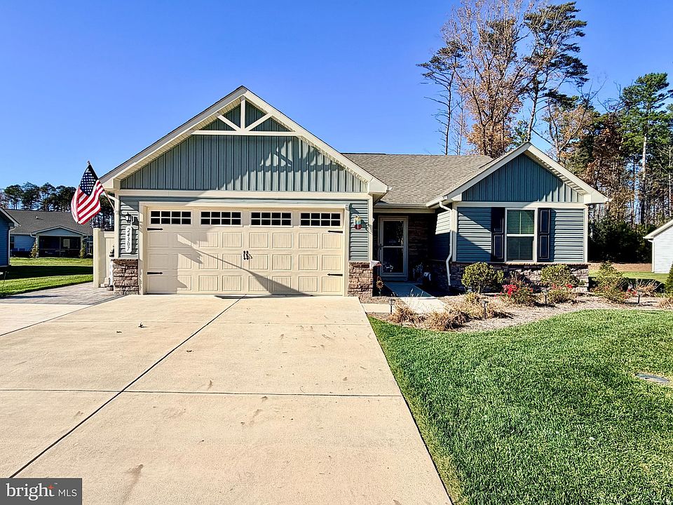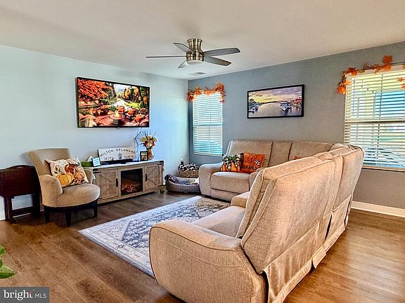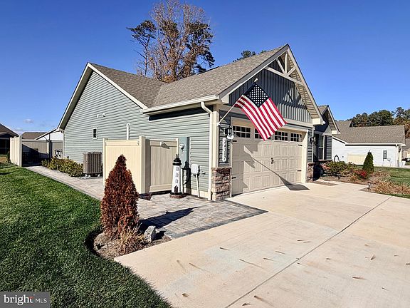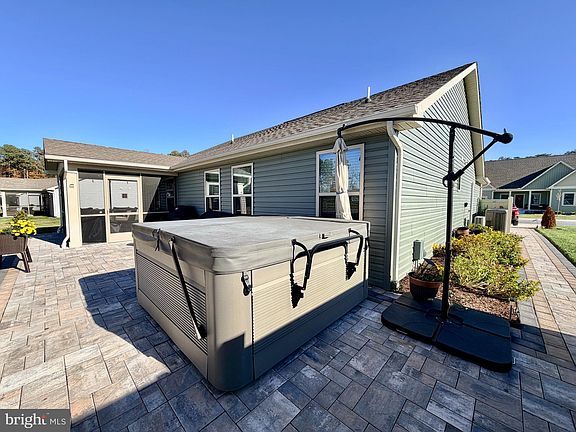 Welcome to 24307 Harvest Circle. This is a like new home built in 2023 and loaded with upgrades and thoughtful finishes throughout. Step inside to a bright foyer that opens to two bedrooms on the right with a full bathroom conveniently located next to them. Follow the hallway into the open concept kitchen, dining area, and living room which serve as the true center of the home. The kitchen features stainless steel appliances, granite countertops, a tile backsplash, and a large island perfect for cooking, hosting, or enjoying a quick meal. The dining area flows into the spacious living room which is ideal for entertaining. The living room is prewired with two 4K HDMI cables, an internet cable, and an elevated electrical outlet so you are all set for your large mounted TV. Just off the living room is the laundry room with a washer and dryer included. At the back of the home you will find the private primary suite with a beautifully upgraded primary bathroom featuring a double vanity, a walk in shower, and a large walk in closet. Inside the home you will find luxury vinyl plank flooring throughout the common areas, soft carpet in each bedroom, and ceiling fans installed in the living room and all bedrooms. The exterior is finished with beautiful partial stone on the front which gives the home excellent curb appeal. The exterior and garage upgrades are just as impressive as the interior. The garage features an epoxy coated floor and its own mini split unit which creates a great bonus space for hobbies or relaxing. Out back you will find extensive hardscaping including a sixteen by forty four foot paver patio and a screened in porch that offers a comfortable outdoor living area. The included hot tub is tucked behind a six foot vinyl privacy fence that wraps around the hot tub area for added privacy. The expanded concrete driveway provides an additional twelve by twenty one foot parking area on top of the existing driveway and two car garage which gives plenty of room for parking. A paver walkway runs along the side of the home for easy access to the garbage enclosure and for moving around the exterior with ease. This home is turn key, extremely well cared for, and full of upgrades inside and out that make everyday living more comfortable and enjoyable.