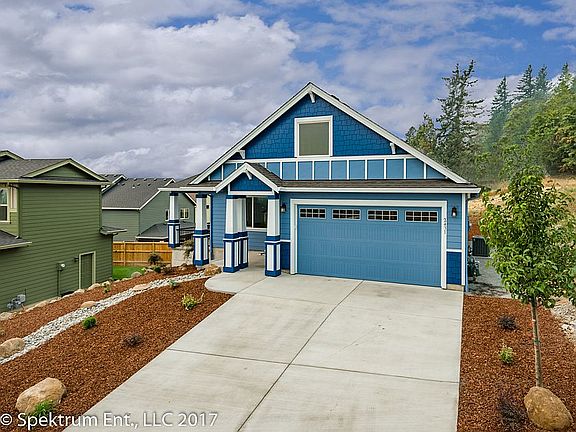 Gorgeous views of Mt Hood, Columbia River Gorge, and surrounding eastern Washougal await you so you can relax on the covered patio and unwind after a long day. Open design with 9 foot ceilings, a large, custom chef's kitchen with pantry adjacent to the spacious living room with stone fireplace (gas) and a large dining room with access to the covered 120sf patio which leads to a garden terrace and large fenced backyard. The large en suite master bedroom has views of Mt Hood and the Columbia River and large bathroom with two sinks, large shower, and walk-in closet. Bedrooms 2 and 3 are both spacious and one has a small walk-in closet. Both bedrooms are adjacent to a full bathroom with single sink and bathtub/shower combo. A separate laundry room has space for a large washer and dryer as well as a large utility sink and folding table. The large two-car garage is unfinished and has a 160sf storage room above, accessible by drop-down ladder. The extremely energy efficient home has 2x6 construction with R40 insulation in the walls and is heated and cooled by a Trane Heat Pump, keeping utility bills low year round. The yard is nearly maintenance-free with sprinkler system and an abundance of native plants, pine, and fruit trees with the backyard surrounded by over 40 arborvitae and a top of the line decorative steel fence.