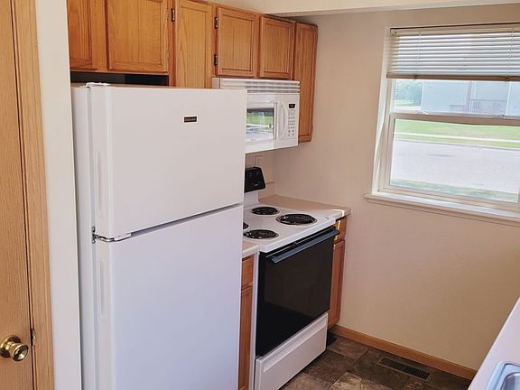 Step into this inviting townhouse featuring an open-concept kitchen and living area, perfect for entertaining or relaxing. The main floor includes a convenient half bath, while upstairs offers three comfortable bedrooms and a spacious full bath with double sinks. Enjoy an attached garage with automatic opener, a private patio for outdoor living, and washer/dryer hookups. Additional perks include off-street parking and a prime central location close to schools, parks, and shopping. Gas forced-air heat keeps you cozy, and water, sewer, and lawn care are included. Tenant pays trash, gas, and electric. Sorry, no pets.
